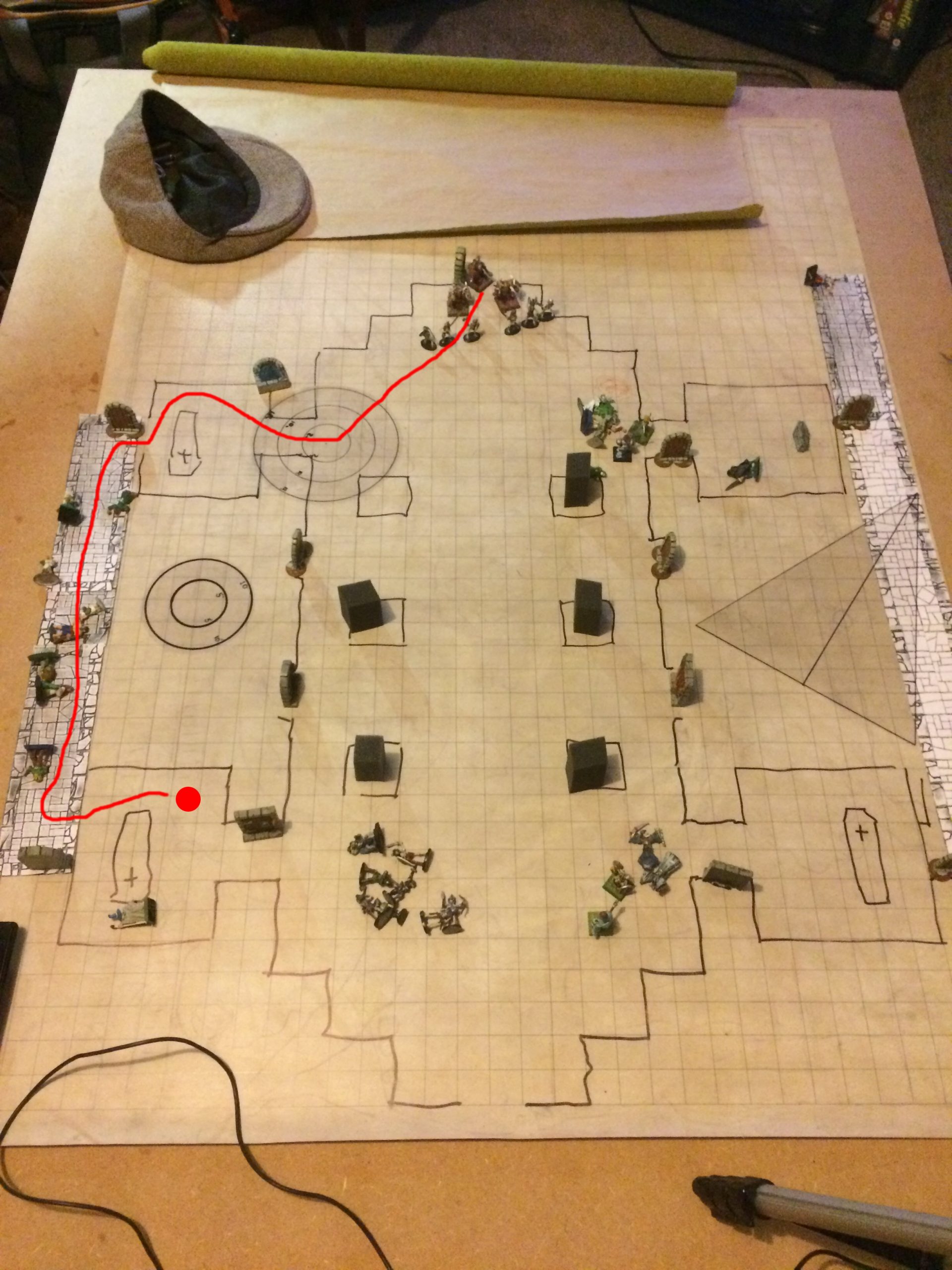 The Paladins and the Priest proceed to charge into the chamber – another Sarcophagus room – and hear something from behind the wall. Father Tobias discovers the Secret Door and the Adventurers are reunited.